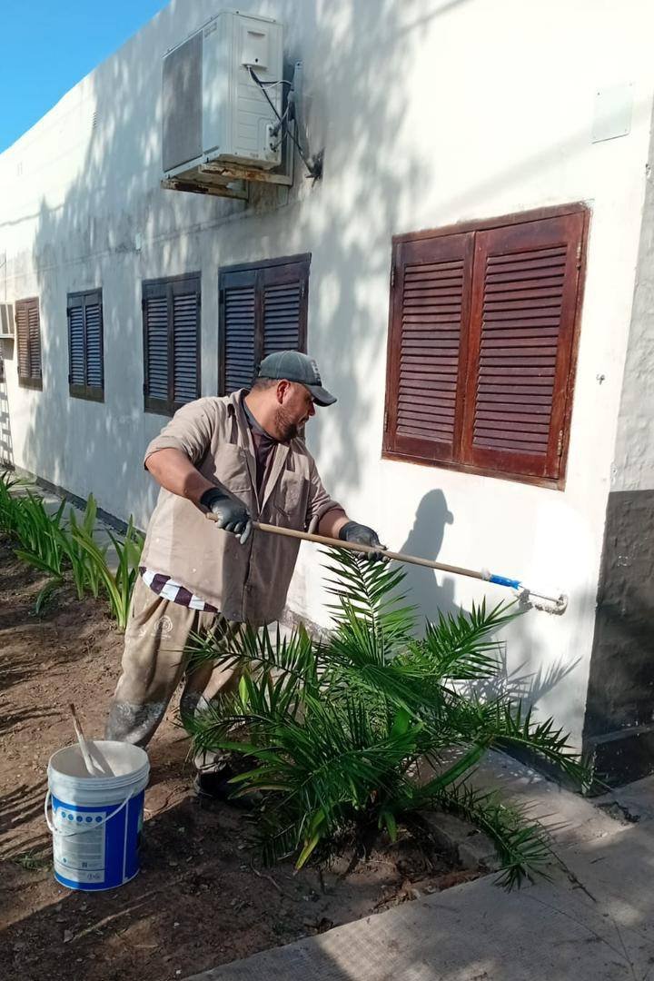 Asimismo, el personal municipal realiza tareas de pintura exterior en la Escuela de Educación Primaria Nº 473 “Intendente Honorio De Langhe”. Los trabajos apuntan a mejorar el aspecto edilicio del establecimiento y contribuir a generar un entorno más agradable para alumnos, docentes y la comunidad educativa en general.